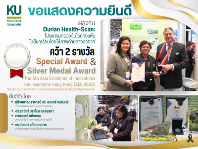 2 รางวัล จากผลงาน Durian Health-Scan: โปรแกรมตรวจจับโรคกิ่งแห้งในต้นทุเรียนโดยใช้ภาพถ่ายทางอากาศ