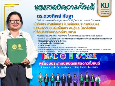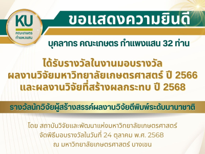 รางวัลผลงานวิจัยมหาวิทยาลัยเกษตรศาสตร์ ปี 2566 และผลงานวิจัยที่สร้างผลกระทบ ปี 2568