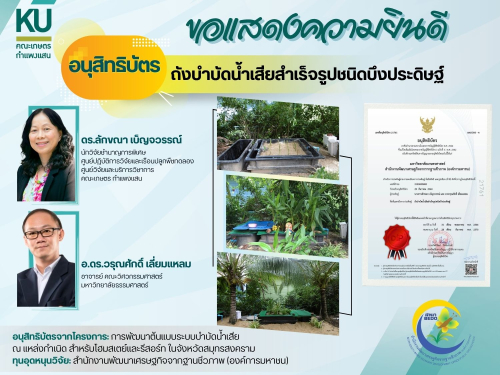 อนุสิทธิบัตร “ถังบำบัดน้ำเสียสำเร็จรูปชนิดบึงประดิษฐ์”