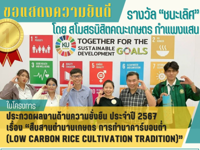 รางวัล “ชนะเลิศ” ของสโมสรนิสิตคณะเกษตร กำแพงแสนในโครงการประกวดผลงานด้านความยั่งยืน ประจำปี 2567