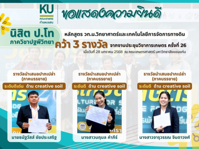 นิสิต ป.โท ภาควิชาปฐพีวิทยา คว้า 3 รางวัล จากงานประชุมวิชาการเกษตร ครั้งที่ 26
