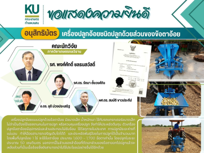 อนุสิทธิบัตร "เครื่องปลูกอ้อยชนิดปลูกด้วยส่วนของข้อตาอ้อย"