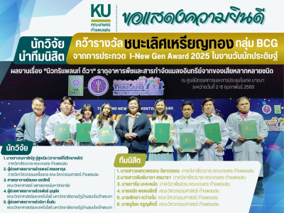 นักวิจัย นำทีมนิสิตคว้ารางวัล "ชนะเลิศระดับเหรียญทอง กลุ่ม BCG" จากการประกวด I-New Gen Award 2025