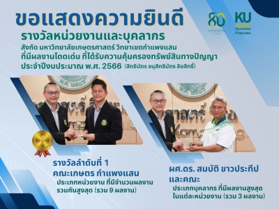 ราวัลหน่วยงานและบุคลากร สังกัด มก.กพส. ที่มีผลงานที่โดดเด่น ด้านโครงการพัฒนาวิชาการ ปีงบประมาณ 2566