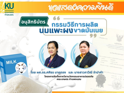 ขอแสดงความยินดี กับ อนุสิทธิบัตร "กรรมวิธีการผลิตนมแพะผงขาดมันเนย"