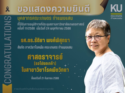 รองศาสตราจารย์ ดร.รัติยา พงศ์พิสุทธา ศาสตราจารย์ (รอโปรดเกล้า) ในสาขาวิชาโรคพืชวิทยา