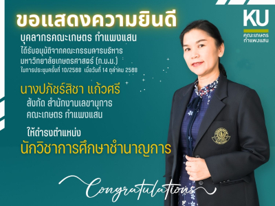 ขอแสดงความยินดี กับ ตำแหน่ง ผู้ช่วยศาสตราจารย์ธีรนาฏ กาลปักษ์