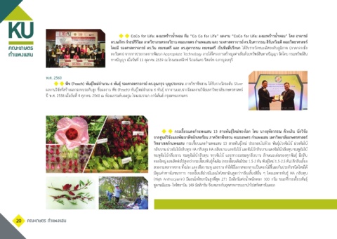 ผลงานวิจัยที่สร้างผลกระทบระดับสูง ชื่อผลงาน พีช (Peach) พันธุ์ใหม่จ�านวน 6 พันธุ์ จากงานมอบรางวัลผลงานวิจัยมหาวิทยาลัยเกษตรศาสตร์