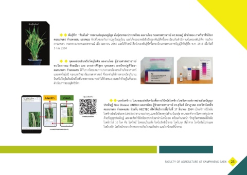 คณะเกษตร ก�าแพงแสน และคณะ ข้าวที่เหมาะกับการปลูกในฤดูร้อน และได้ขอออกหนังสือรับรองพันธุ์พืชขึ้นทะเบียนกับส�านักงานคุ้มครองพันธุ์พืช กรมวิชา