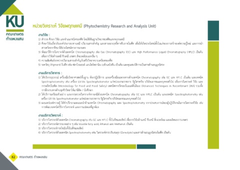 3) เผยแพร่องค์ความรู้ ให้ค�าปรึกษาและแนะน�าด้านเทคนิค Chromatography และ Spectrophotometry จากประสบการณ์ของผู้ปฏิบัติงานในการวิเคราะห์วิจัย เช่น