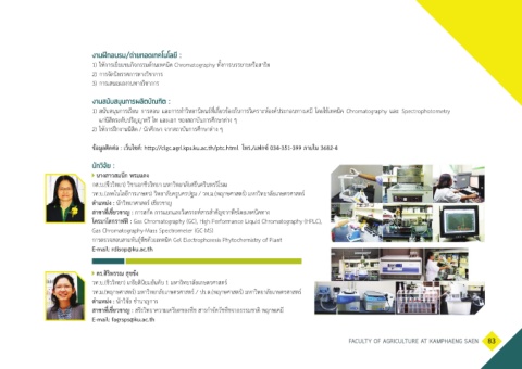 1) สนับสนุนการเรียน การสอน และการทาวิทยานิพนธ์ท่เก่ยวข้องกับการวิเคราะห์องค์ประกอบทางเคมี โดยใช้เทคนิค Chromatography และ Spectrophotometry